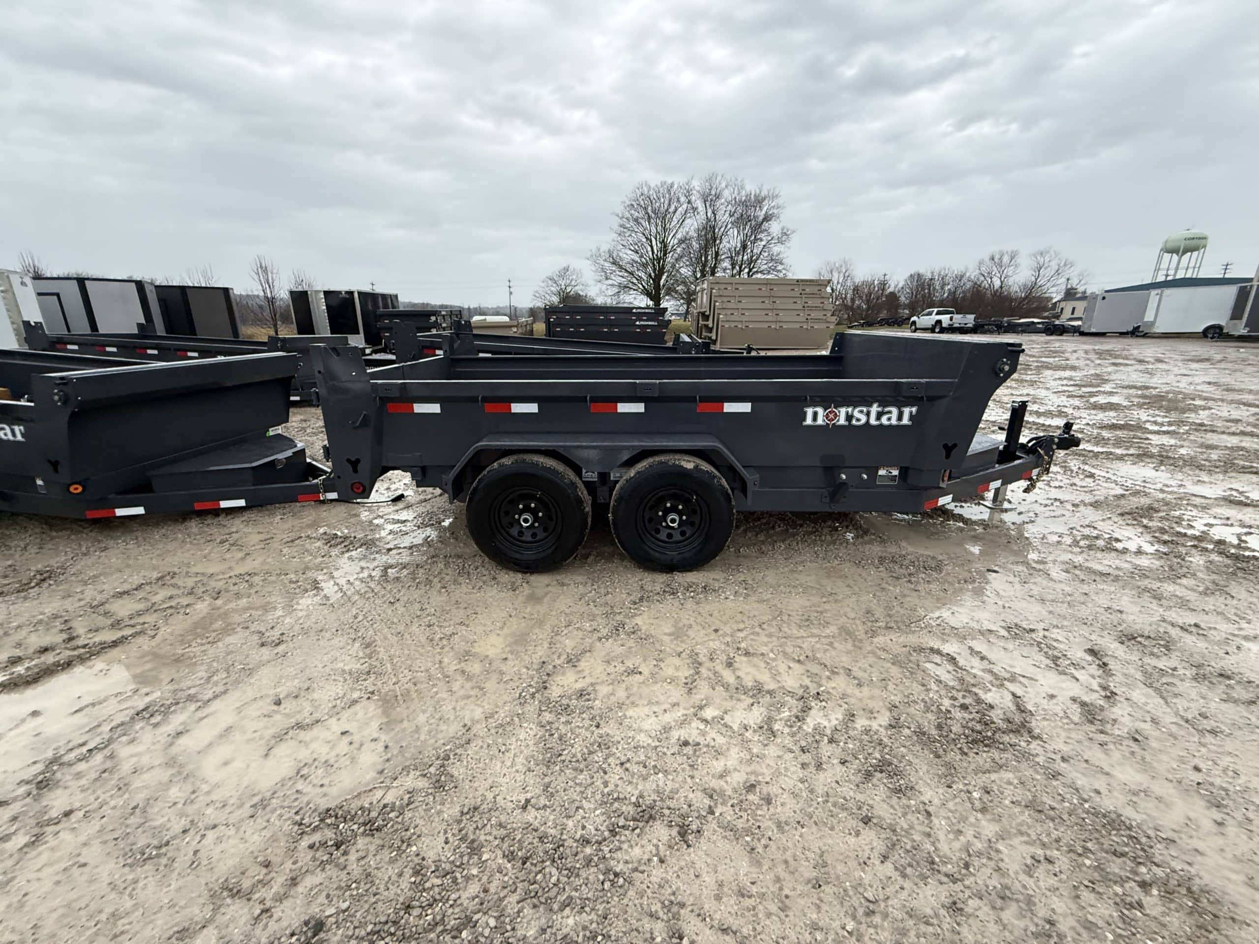Introducing the latest addition to our lineup for 2025 - the Norstar DCB 10k General Duty Dump Trailer. Engineered with precision and built to last, this trailer boasts 2- 5,200 lb electric brake axles, a sturdy 10 gauge floor, a convenient barn door gate, a scissor hoist, and a host of other features. Norstar continues it's tradition of excellence by delivering another top-quality dump trailer. With standard 20" dump sides and the option for 2" x 6" side wall board caps, you can enjoy the versatility of traditional 26" sides while reducing overall trailer weight. Plus, each DCB is backed by a 1-year limited warranty for added peace of mind. Experience superior performance with the Norstar DCB 10k General Duty Dump Trailer.